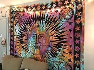 (1, 140cm x 220cm Inches (approx)) - ModTradIndia - Celestial Sun Moon Stars Planet Tapestry, Indian Hippie Wall Hanging, Bohemian Bedspread, Mandala Cotton Dorm Decor Beach blanket (1, A)