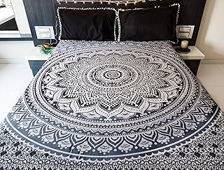 (Black/Gray) - Folkulture Indie Pop Ombre Bedspread with Pillow Covers, Indian Bohemian Tapestry Wall Hanging, Picnic Blanket or Hippie Beach Throw, Mandala Bedding for Bedroom, Black Grey Queen Size Boho Spread