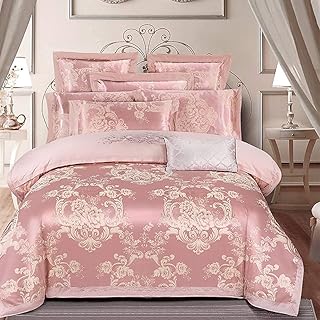 シルク寝具セット キングサイズ、布団カバー キングサイズベッド レッド、寝具セット キングサイズ ダブル布団カバーセット シルク コットン サテン ジャカード ダブルベッド ツイン シルバー 4 pcs 装飾