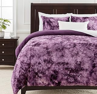 Chanasya ファジー フェイクファー パープル 羽毛布団カバーシーツセット キングサイズ - 7点コンボ - ソフトで心地良いシャグ ふわふわ ロイヤル ラグジュアリー ベルベット ミンク ファブリック 寝具 - 掛け布団カバー ブランケット スプレッド - オーベルジン