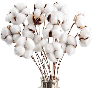 コットン ステム ファームハウス デコレーション (20 パック) コットン 装飾 花の茎 & 人工枝 フェイクコットン 花 植物 小枝 茎 花瓶 コットン リース & コットン ガーランド