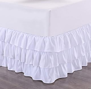 Tebery ホワイト マイクロファイバー マルチラッフル ベッドスカート 伸縮性 ベッドラップ 簡単フィット ダストラッフル 15インチ しわ 色あせ防止 (ツイン)