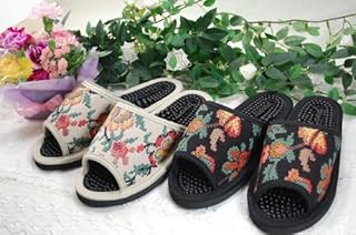 ヘルス チロル刺繍 スリッパ ベージュ・ブラック 健康サンダルスリッパ おしゃれ 【ベージュ】