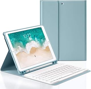 ipad 10.2 (ipad 9世代 2021) キーボード ケース iPad 第8世代 キーボード ケース iPad 10.2 キーボード ケース iPad 第7世代 キーボードケース ペンシルホルダー付き オートスリープ機能 PU レザー Bluetoothワイヤレス キーボード ケース全面保護型 傷防止 (青)