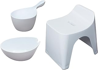 日本製 バスチェア HUBATH ヒューバス バススツール + ウォッシュボール + ハンディボール 計3点セット (ホワイト, H30)