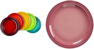 ル・クルーゼ(Le Creuset) 皿 ラウンド・プレート LC 23 cm レインボー 耐熱 耐冷 電子レンジ オーブン 対応 5枚 入り 【日本正規販売品】 & 皿 ラウンド・プレート 23 cm ローズクォーツ 耐熱 耐冷 電子レンジ オーブン 対応 【日本正規販売品】【セット買い】