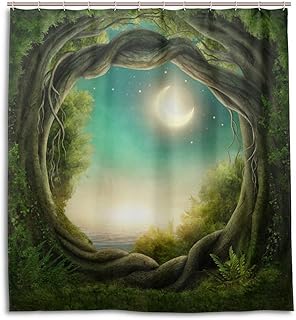 3D シャワーカーテン バスカーテン 浴室 防水防カビ 目隠し用 リング付属 180X180cm 夢幻の森
