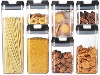気密食品保存容器 7個 BPAフリー 透明プラスチック容器 簡単ロックブラック蓋 キッチンパントリー整理 黒板ラベル24枚とマーカー1個付き