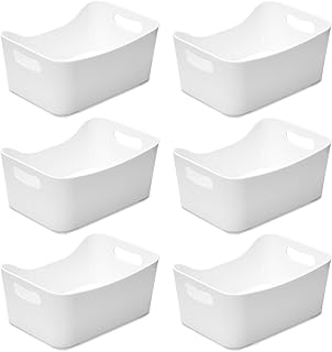 YBM HOME ストレージビン - オープンプラスチックオーガナイザーとストレージバスケット キッチンパントリー整理、シンク下バスルームストレージ、おもちゃバスケット、食品ストレージボックスコンテナ(ミディアム - 6パック、ホワイト)