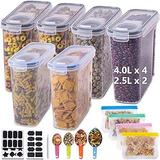 Paincco 密閉食品保存容器 4個 BPAフリー プラスチックキャニスター [4.3L / 145オンス] シリアル、小麦粉、ベーキング用品、キッチンパントリー整理、ラベル20枚とマーカー1枚付き