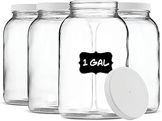 Paksh Novelty 1ガロン ガラスジャー 広口 密閉プラスチック蓋付き 4個パック USDA承認 BPAフリー 食洗機対応 クリアメイソンジャー 発酵 コンブチャ ケフィア 保存 缶詰 黒板ラベル