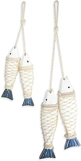 ESTART 2個 壁掛け木製海洋魚装飾 壁装飾 ドア吊りビーチテーマ装飾 家庭用 地中海スタイル ホームオーナメント (S+L)