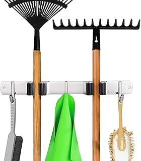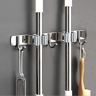 Saxhorn ほうきモップホルダー ステンレススチール 壁取り付け収納オーガナイザー キッチン/ガレージ/庭/ランドリー/バスルーム整理/収納に (ラック2個/フック3個)