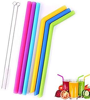 再利用可能 ストロー なシリコンストロー +専用ブラシ 繰り返し使える 環境に優しい、BPAフリー4本入りストロー(ランダム カラー)