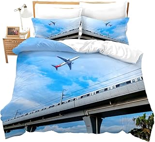 Feelyou 飛行機布団カバーセット スカイ航空テーマ寝具セット ツイン フル クイーン キング キッズ ボーイズ ガールズ メンズ 装飾3Dプリント モダン マイクロファイバー 掛け布団カバー 枕カバー付き ファスナー付き Full(No Comforter) SX977WF-Full