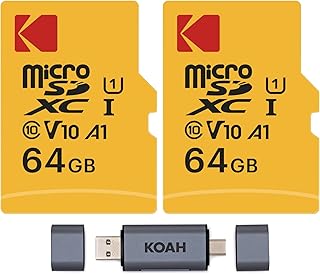 KODAK 64GB クラス10 UHS-I U1 microSDHCカード アダプター付き (2パック) Koah Pro アルミニウム 2-in-1 アルミニウム デュアルスロット SDカードリーダーバンドル (3アイテム)