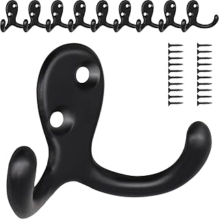 コートフック 高耐久 ダブルプロング コートフック 壁取り付け ダブルローブフック ユーティリティフック コート/スカーフ/バッグ/タオル/キー/キャップ/カップ/帽子用 ブラック 10個パック