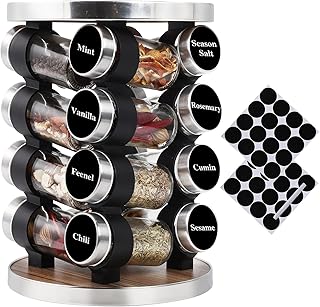 スパイスラックオーガナイザー カウンタートップ用 回転スパイスオーガナイザー 16個の調味料ジャー付き キャビネット用 スタンディングストレージ キッチン用調味料タワー