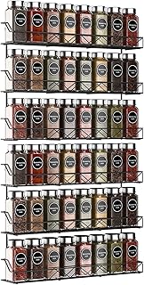 スパイスラックオーガナイザー キャビネットまたは壁掛け用 – 高互換性壁掛けスパイスラック ラージ2個&レギュラースパイス調味料オーガナイザー2個付き キッチンキャビネット 食器棚 パントリードア用