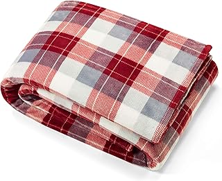 Nautica Home Bluff 格子柄コレクション シルクマイクロファイバー ウルトラソフトで心地よいフラシ天 軽量フリースブランケット お手入れ簡単 洗濯機洗い可 フル/クイーン/レッド