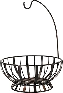 Gourmet Basics by Mikasa Stripe Fruit Metal Basket with Banana Hanger, Antique Black by Gourmet Basics by Mikasa