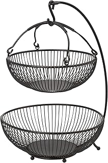 Gourmet Basics by Mikasa Spindle 2-Tier Adjustable Basket with Banana Hook, Antique Black by Gourmet Basics by Mikasa