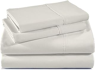 Purity Home プレミアム400スレッドカウント 100%コットン 究極のパーケールベッドシーツセット アイボリーツインシーツ 吸湿発散性 ソフト仕上げ クールクリスプ 特許取得済ボックスシーツ最大18インチのディープポケットに対応