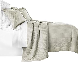 Chezmoi Collection Yuma 3ピース モダンステッチパターン 100%コットン プレウォッシュ加工 ソフト仕上げ キルトセット キング サンド
