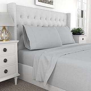 ピュアオーガニックコットン Lt グレー パーケール織り ベッドシーツセット フルサイズシーツ 4枚 吸湿発散性 軽量 パリッとしたクール GOTS認定 深さ18インチまでのマットレスに対応