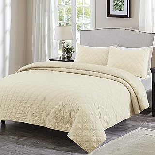 EnvioHome 100%コットン プレウォッシュ加工 ソフト仕上げ ソリッドキルトセット 2点 ツイン 小麦