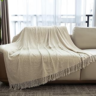 meluke シェニール織ニットスローブランケット カウチ用 ソフトで心地良いふわふわの質感のあるブランケット 装飾フリンジ付き ソファや椅子、ベッド、リビングルーム、フレームハウスギフトに (ベージュ 50x60インチ)