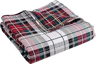 Levtex Home Thatch Home Spencer 格子縞キルトスロー - (50x60インチ) - タータンチェック - レッド、グリーン、ホワイト、ブルー、ゴールド - キルト(50x60インチ) - リバーシブル