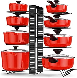 鍋とフライパンオーガナイザーラック キャビネット用 調節可能 8段 鍋 蓋 オーガナイザー ラックホルダー キッチンキャビネット 調理器具パントリー カウンタートップ ベーキングウェア オーガナイザー ラックホルダー 6つのDIY方法