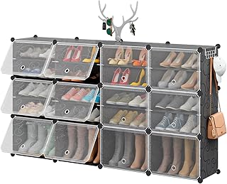 Aeitc 靴ラック オーガナイザー DIY 靴オーガナイザー キーフック付き 拡張可能な靴収納キャビネット 積み重ね可能 スペースセーバー 靴ラック 玄関 廊下 クローゼット用 48ペア