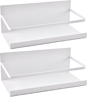 Kulmeo 磁気スパイスラック マグネットシェルフ 冷蔵庫用 磁気 冷蔵庫 スパイスラック ホワイト 2個パック フック付き