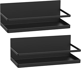 Akamino 磁気スパイスラック 2個パック スパイスラック 壁取り付け 1段 冷蔵庫 スパイス収納 棚 オリーブオイル 料理オイル 塩 コショウ用 キッチンの省スペースに最適 ブラック