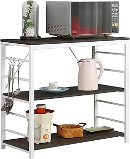soges 3段レンジ台 レンジラック 木製調理台付き キッチンボード キッチン 棚 食器棚オープンボード レンジおき 台 キッチン 省スペース 幅約90cm×奥行約40×高さ約80cm (ブラック×ホワイト)