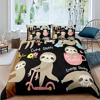 Feelyou ナマケモノ掛け布団カバーセット 漫画ナマケモノ柄 掛け布団カバー 子供 男の子 女の子 3Dアニマルテーマ寝具セット かわいいナマケモノ柄 ベッドスプレッドカバー 寝室コレクション 2枚 ツインサイズ
