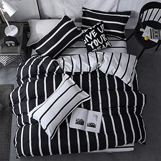 LAMEJOR 掛け布団カバーセット クイーンサイズ シンプル ブラックとホワイト ストライプ柄 リバーシブル ラグジュアリー ソフト 寝具セット 掛け布団カバー (掛け布団カバー1枚+枕カバー2枚)