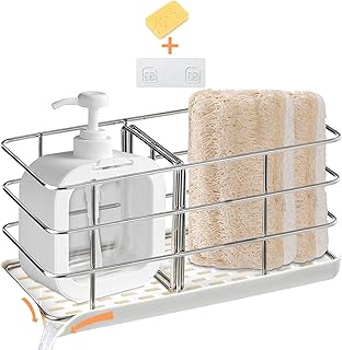 UOIENRT ディッシュソープディスペンサーキャディ つや消しステンレススチール スポンジホルダー シンク用 キッチンシンクキャディオーガナイザー ディッシュラグ ブラシ スクラバー ソープディスペンサー ボトルホルダー カウンターストレージ
