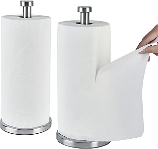 ペーパータオルホルダー ステンレススチール - 簡単に切り取れる ペーパータオルディスペンサー - 重みのあるベース - スプリングアーム調節可能 あらゆるタイプのペーパータオルを固定 - キッチン 浴室対応 ペーパータオルホルダー