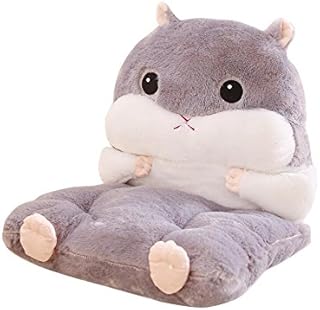 MJY屋 背もたれ付き クッション かわいい アスナー付き 手が入る デスク枕 座布団 動物クッション オフィス 椅子 車用 シートクッション リボン付き 折りたたみ式 ハムスター 45X90cm (グレー)