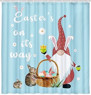 面白いイースターノームシャワーカーテン かわいいノーム 卵とうさぎ シャワーカーテン バスルーム用 ポリエステル生地 春 フェスティバル シャワーカーテン バスルームアクセサリー 装飾 70 x 70インチ