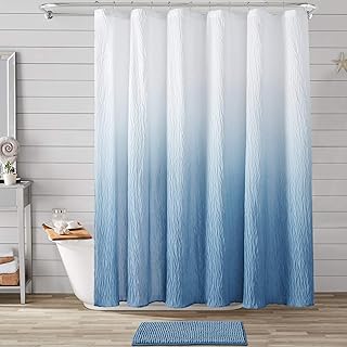 JSLOVE シャワーカーテンセット ラグ付き バスルーム用 72 x 72インチ シャワーカーテン 浴室用 フック12個付き 防水オンブレブルー