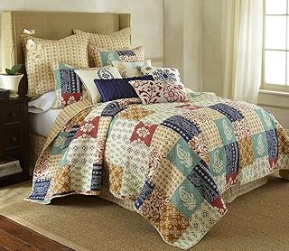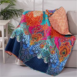 Levtex Home - マッケンジー - キルトスロー - ボヘミアン - ティール、オレンジ、イエロー、グリーン、ブルー - スローサイズ 50x60インチ - リバーシブル - コットン生地