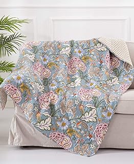 Levtex Home - ローマ - キルティングスロー - 50x60インチ - ペイズリー - ベージュ、ブルー、ホワイト - リバーシブルパターン - コットン生地