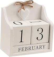Garneck 木製ブロック パーペチュアルデスクカレンダー ヴィンテージ 素朴なホームデコレーション 誕生日ギフト (ホワイト)
