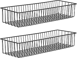 Wetheny 壁マウント ファームハウス 装飾 メタルワイヤー オーガナイザー 収納バスケット ビン (2パック) トイレットペーパーストレージ 整理 収納 寝室 バスルーム キッチンキャビネット パントリー、ランドリールーム クローゼット クラフトルーム ガレージ (ブラック)