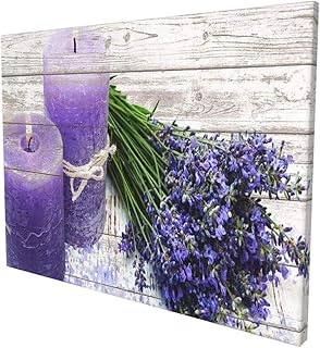MSGUIDE パープルキャンドルとラベンダーの花 壁装飾 絵画 プリント フレーム入りキャンバスプリント アートワーク 壁アート バスルーム 寝室 キッチン 素朴なホームデコレーション 16x12インチ