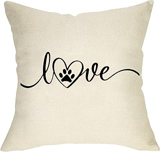 Softxpp 犬の足 スローピローカバー ラブハート 装飾ペット枕ケース 犬愛好家への装飾 農家の正方形クッションカバー 素朴なホームデコレーション ソファ カウチ18インチx18インチ コットンリネン
